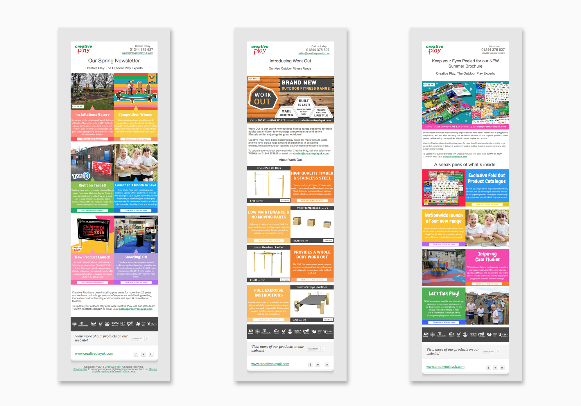 ABOVE: Creative Play Spring 2019 Newsletter, Work Out Product Range Launch & Summer Brochure Reminder