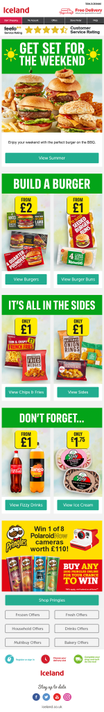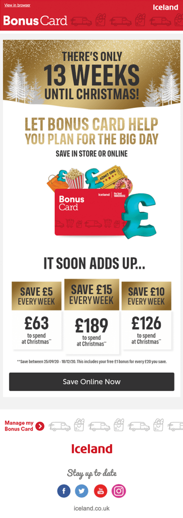 ABOVE: Iceland Foods Bonus Card Christmas Reminder, Summer Burgers & Free Payday Treat Incentive