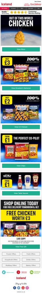 Email campaigns designed for Iceland Foods and Creative Play UK. Each designed to target different customer groups and promote best deals.