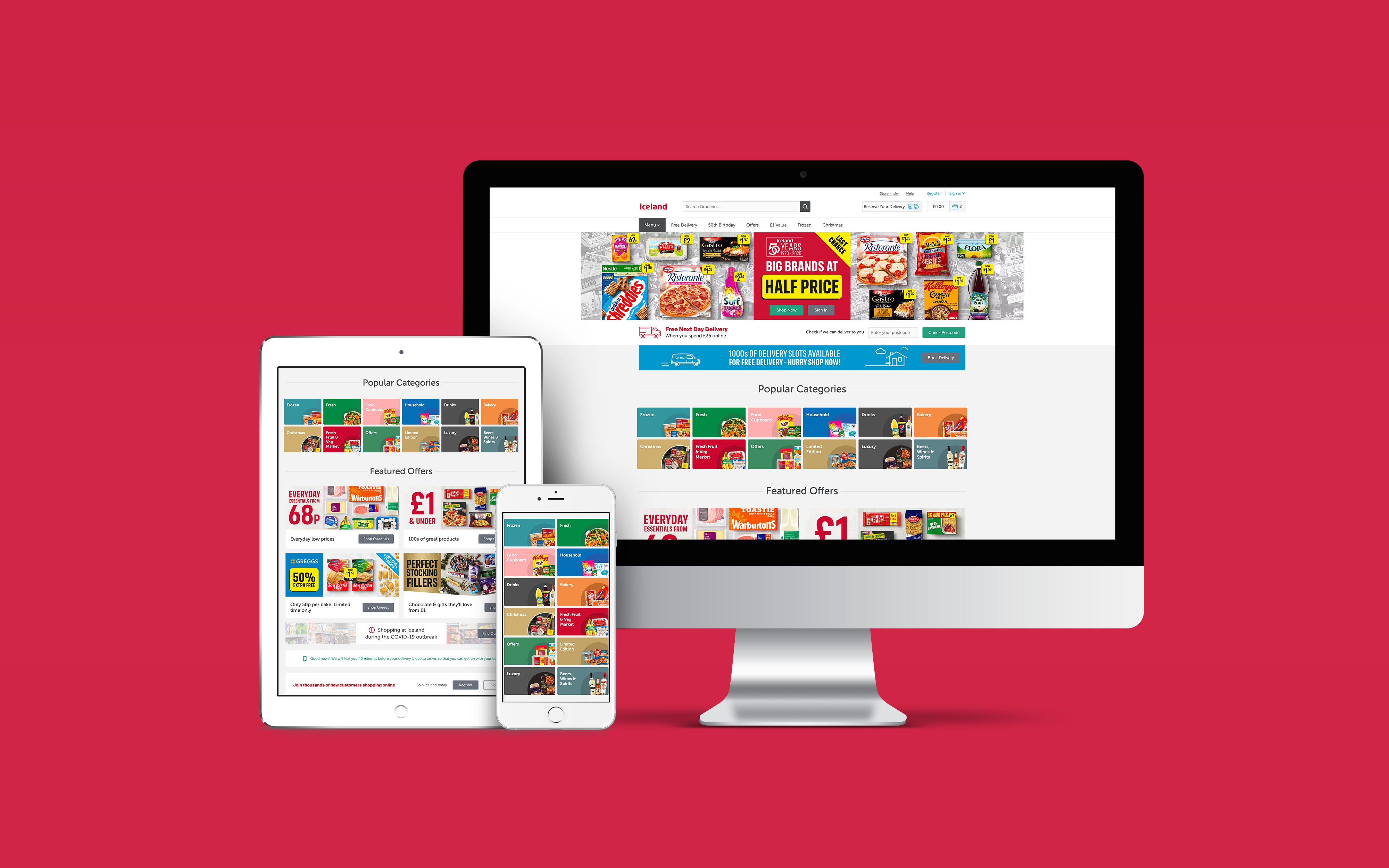 Colours used relate to ones used across Iceland Foods and cards showcase key products from each category with the aim to help reduce bounceback rates.